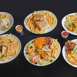 One of the standout dishes at Mister Naan is their Menu sandwich, featuring escalope de poulet, steaks, egg, Boursin cheese, Cheddar, fresh vegetables, homemade bread, and your choice of two sauces. This hearty meal also comes with fries and a drink of your choice.